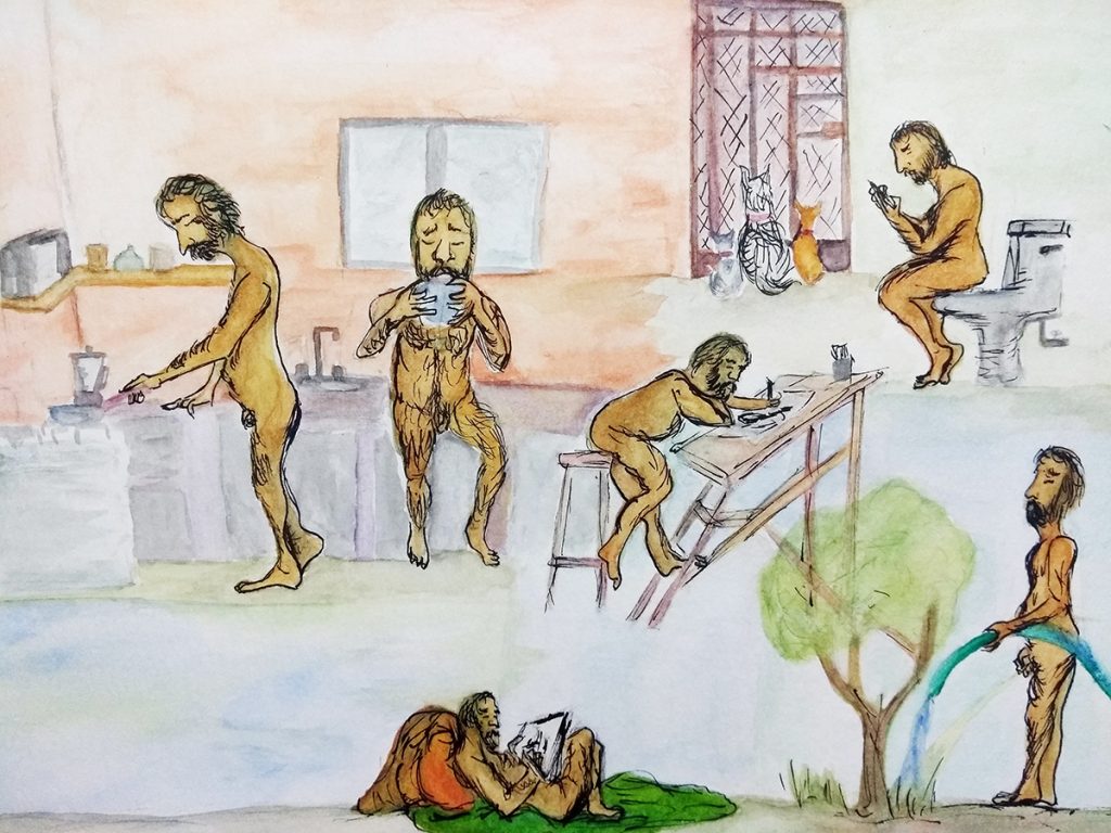 Tinta china, té chai y acuarela sobre papel de algodón