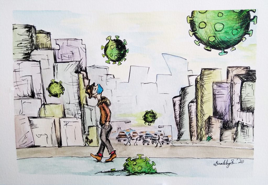 Peatón paseando al Covid-19