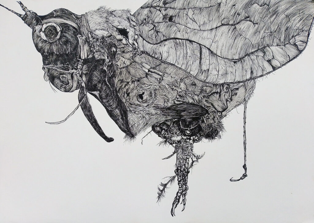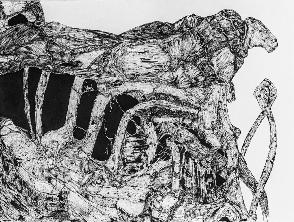 Tinta china y marcador permanente sobre papel de algodón