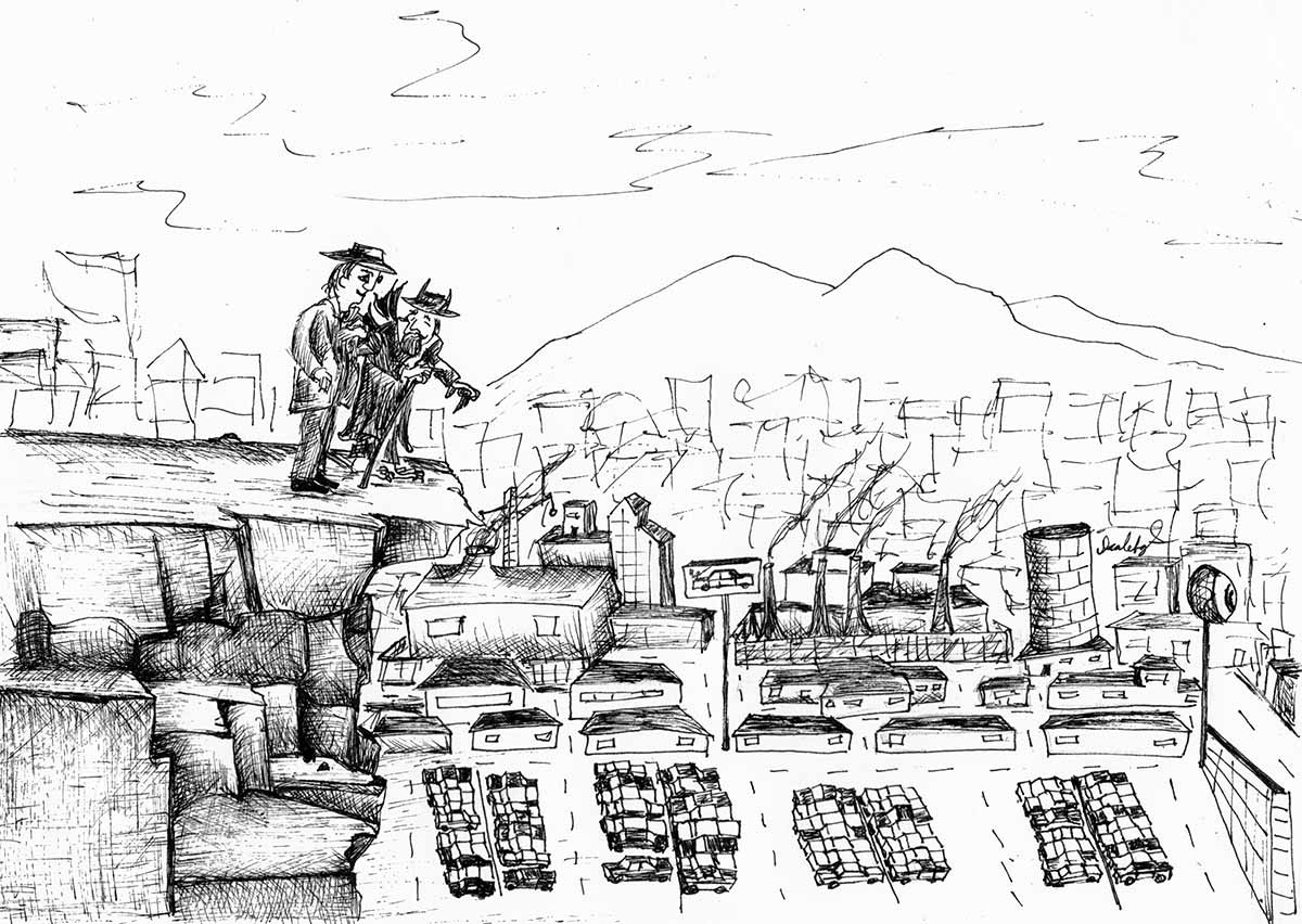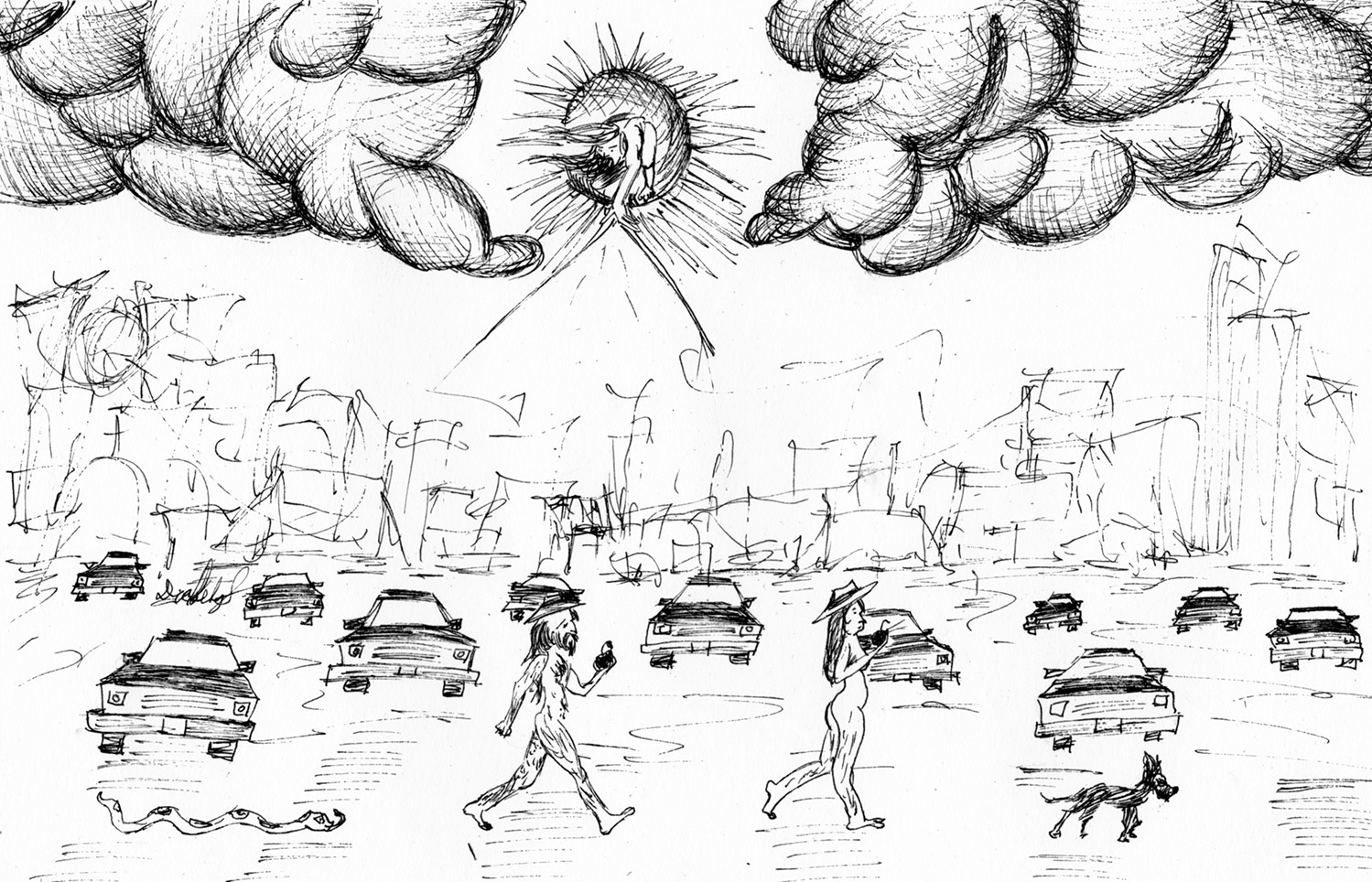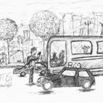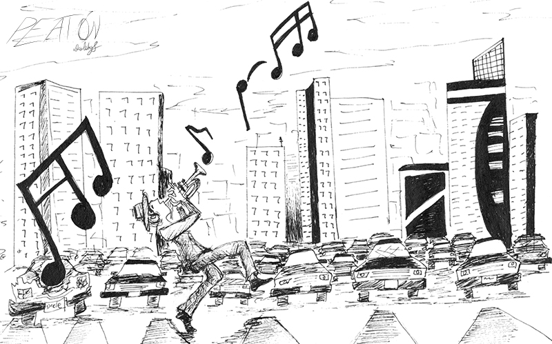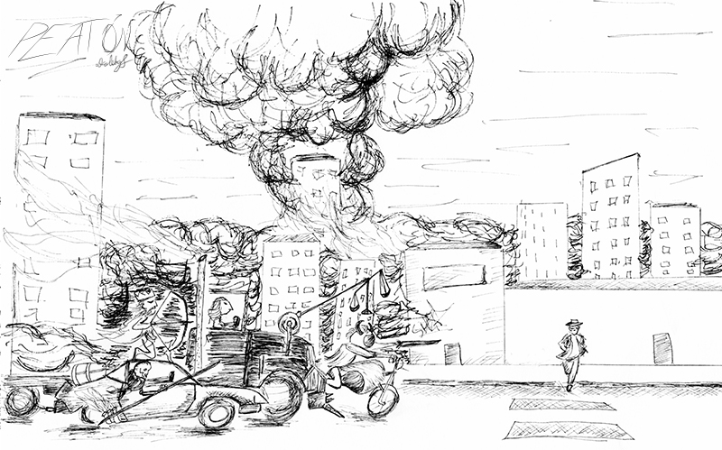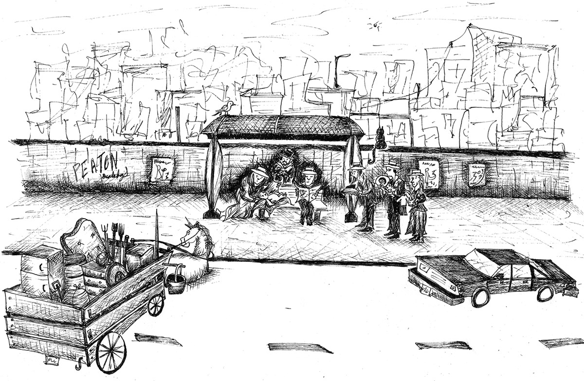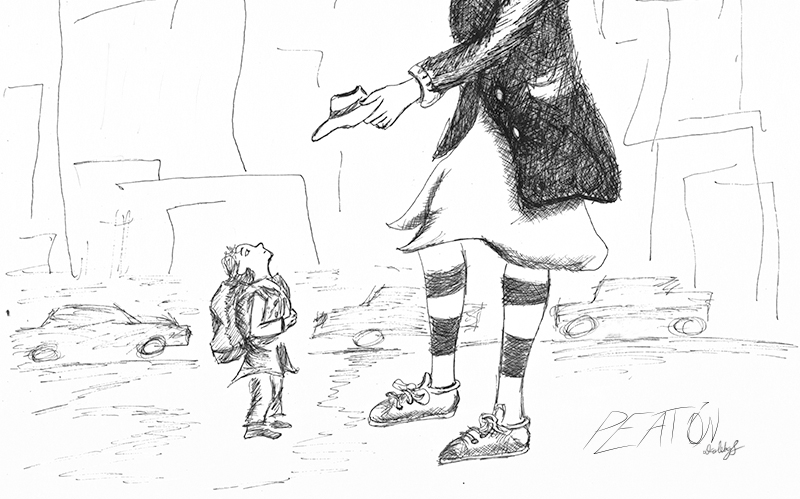 Es un proyecto que inicié en mayo del 2012, en el que se ilustra a través del dibujo la forma en que me percibo como caminante dentro de una ciudad como Monterrey, donde las calles están construidas para el automóvil. A veces de forma fantástica, a veces más cercana a la realidad, aprovechando el lenguaje de la tira cómica y tomando libremente recursos del cine, la literatura y de mis recorridos por la ciudad,. Con más de 150 ilustraciones, Peatón es un proyecto que continúo desarrollando.